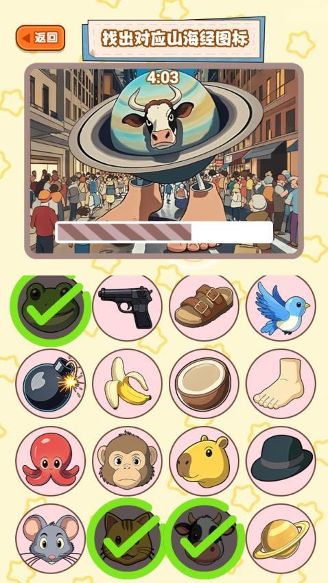 4、确认所选图标与画面元素对应,全部正确即可通关该山海经图标挑战。