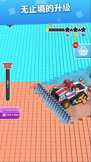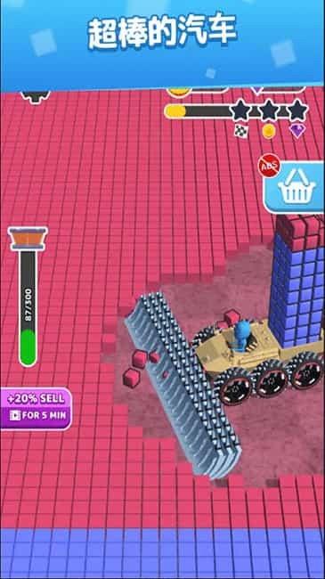2、解压无扰体验:快速驾驶铲土车铲掉地面所有方块,作为解压游戏没有任何广告,让玩家能专注于游戏,享受纯粹的解压乐趣。