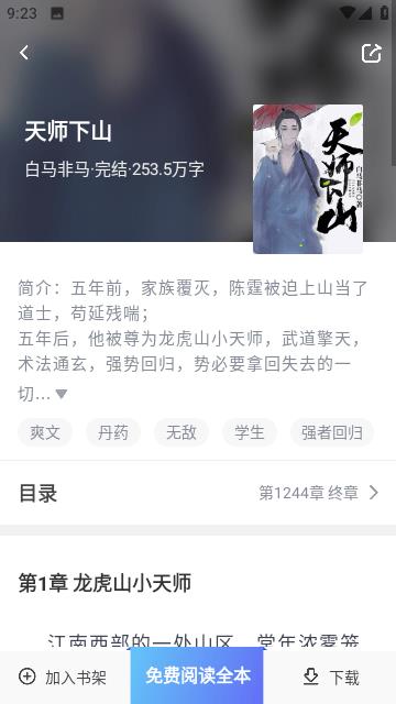4、点击【免费阅读全本】,开启小说阅读之旅。