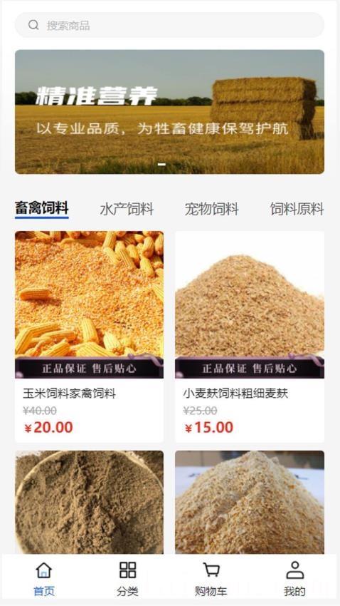 1、分类导航精准找货:按饲料类型细致分类,用户可通过分类快速筛选所需商品,减少查找时间提升效率。