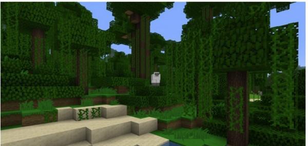 4、遇到树木,靠近后点击,可获取木材和上方的可可豆,用于制作工具或食物,让我们的世界更多姿多彩哟。