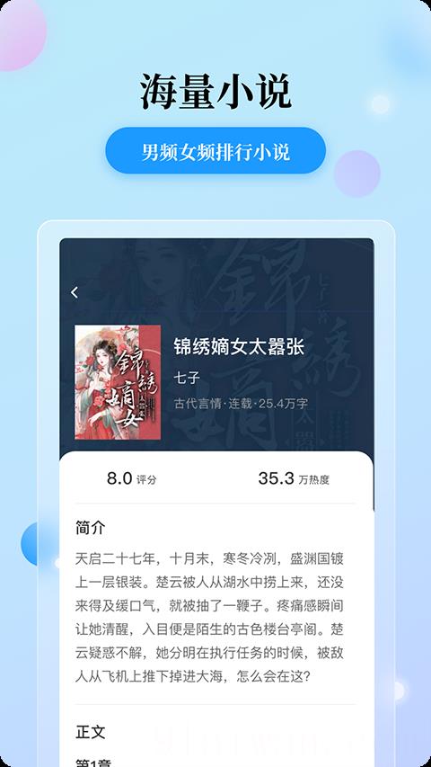 4、无广告体验清爽:全程无广告干扰,以清爽式设计呈现内容,避免阅读时被打扰,搭配自定义设置功能,让用户专注于故事。