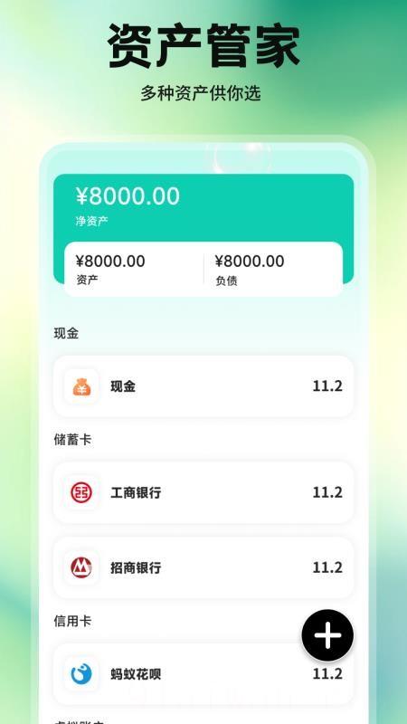 3、资产管理全面:支持在工具中管理现金、储蓄卡、信用卡等各类资产,用户可随时查看财富情况,助力清晰掌握财务现状。