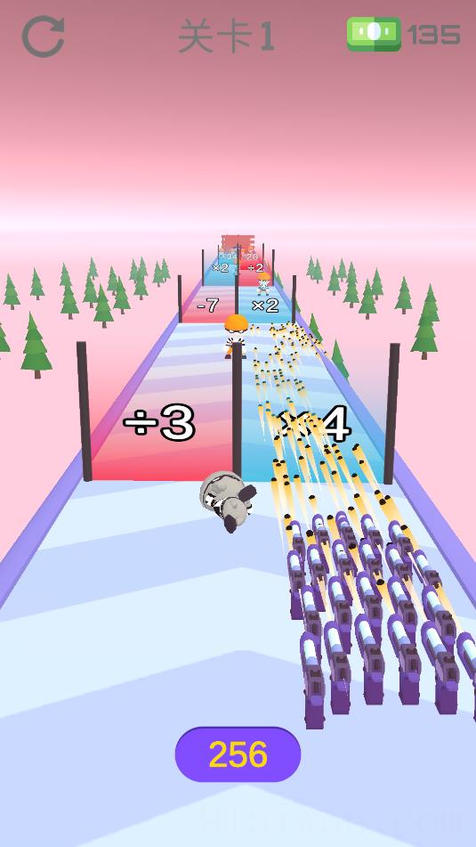 2、开局一把小手枪,经过+或者×数字时可以增加手枪数量,增加攻击力。