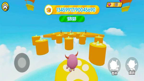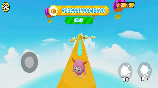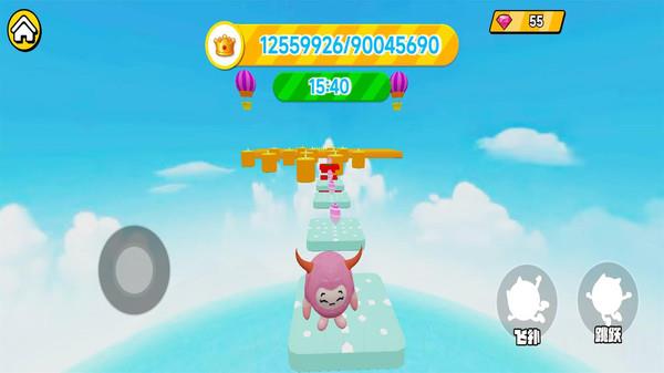 3、场景互动有趣:彩虹滑梯场景中碰撞边缘会产生弹性,利用特性实现连续跳跃,轻松越过间隙节省闯关时间。