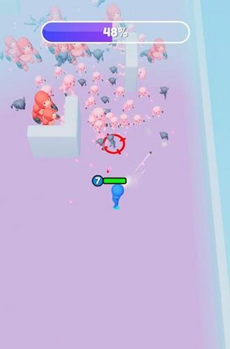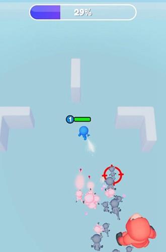 2、瞄准灰色敌人射击,同时注意粉色方位,避免被攻击到。