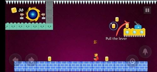 3、使用左右方向键移动角色,右侧按键控制跳跃等操作,收集金币。
