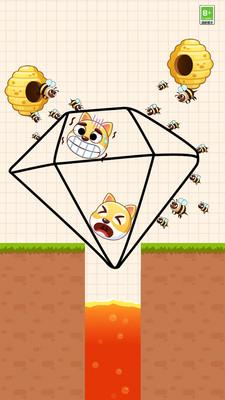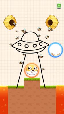 2、在“第1关”,用笔画出三角形状,将小狗围起来,抵御蜜蜂袭击。