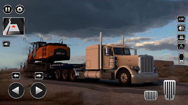 2、驾驶时,用左侧按钮控制方向,右侧踏板分别对应油门与刹车,操控卡车移动。