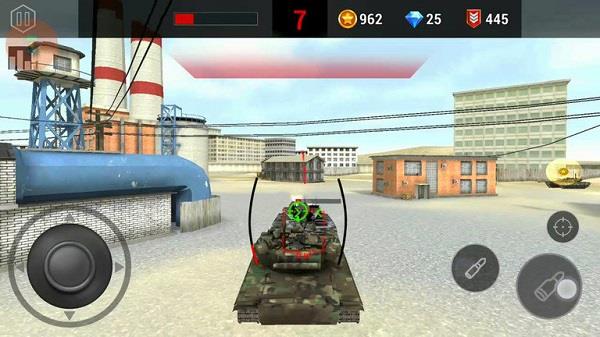 3、遇到敌方坦克时,点击右侧攻击按键,向敌方坦克发起攻击,尝试摧毁它们。