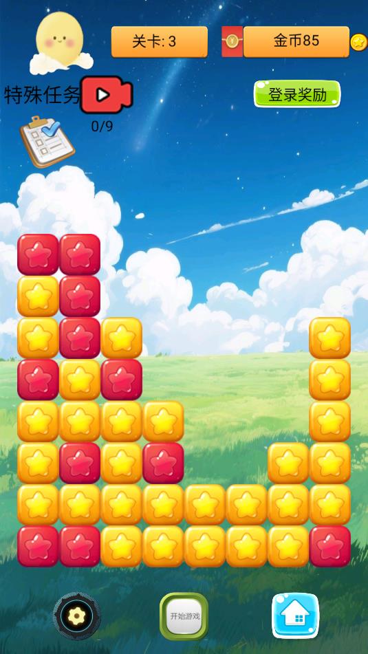 2、消除全部的星星即可通关,并获得游戏币。