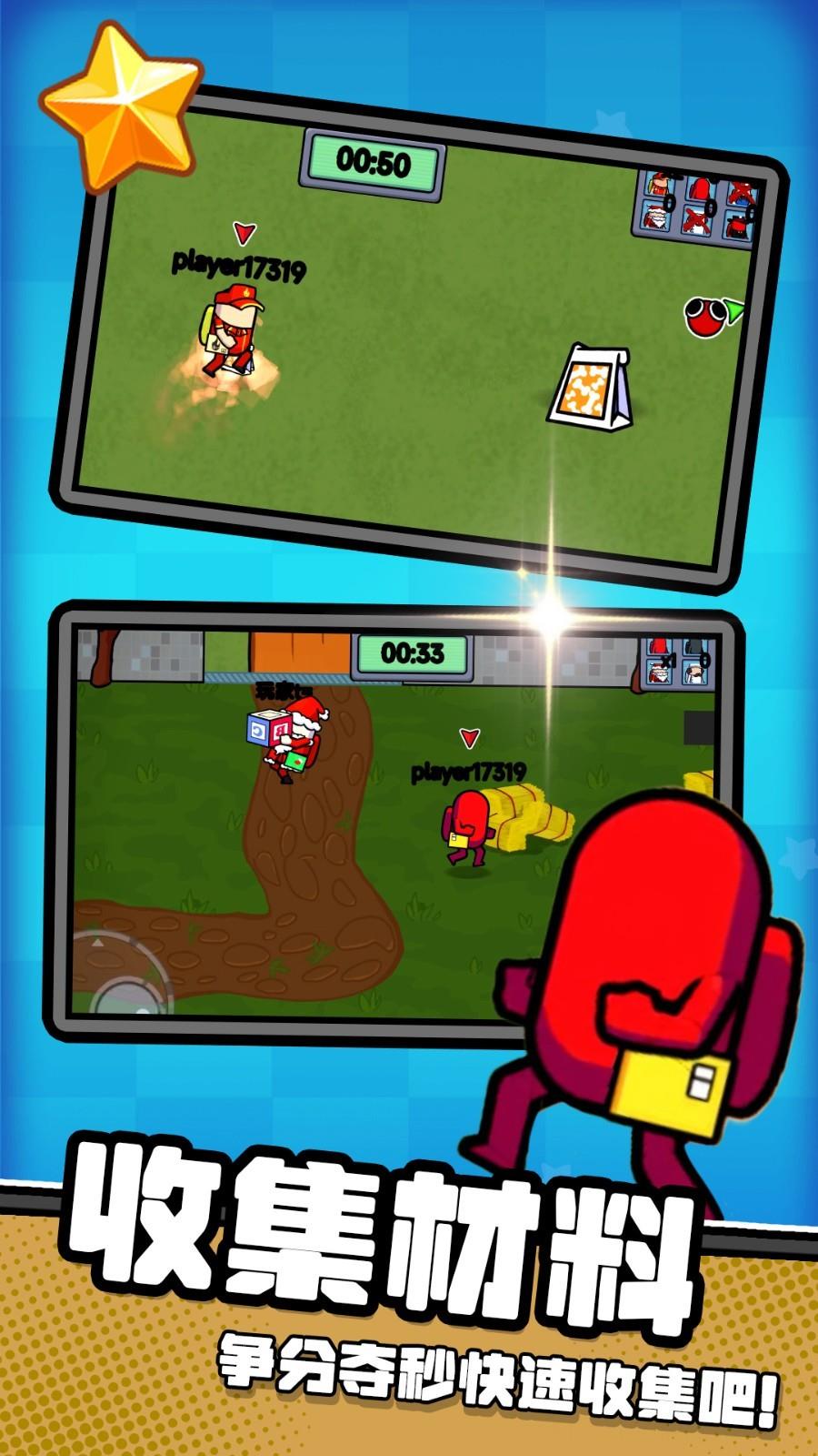 游戏支持虚拟摇杆控制,玩家需操作角色移动,寻找目标方块并将其送达指定地点。同时,玩家还需要躲避怪物的追击,并利用伪装机制将自己伪装成物体以规避敌人视线。游戏界面实时显示幸存玩家数量,为玩家制定战略和合作提供有力支持。
