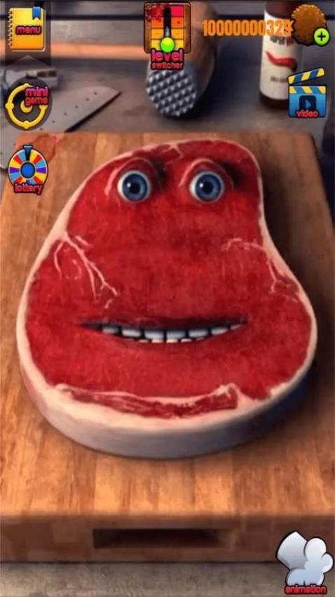 2、刀具养成机制:刀具收藏馆可升级镀金菜刀与激光刀,激光刀碳化肉块需看广告充能。