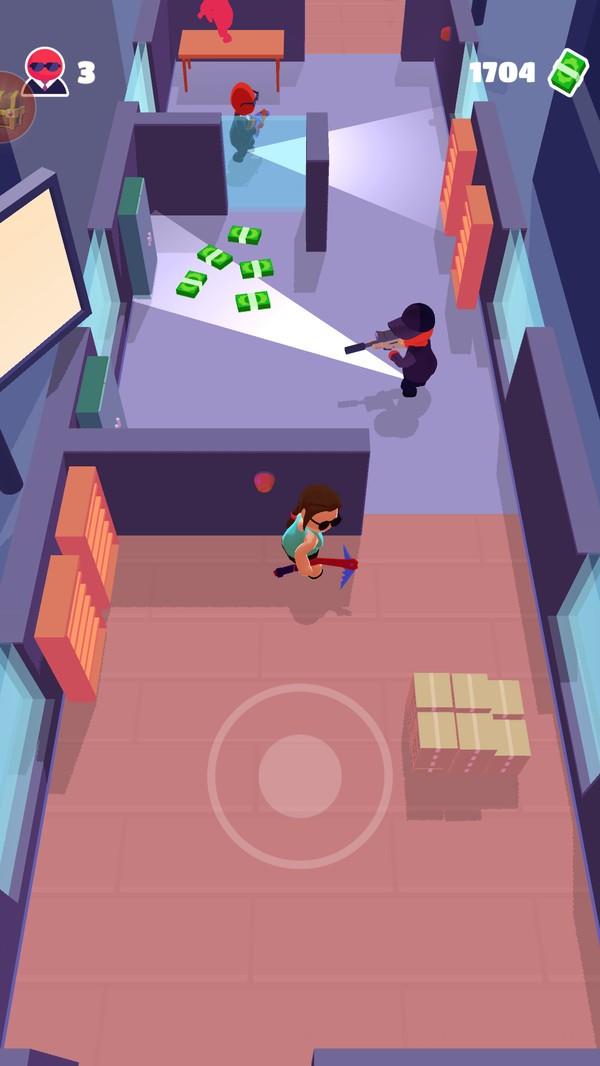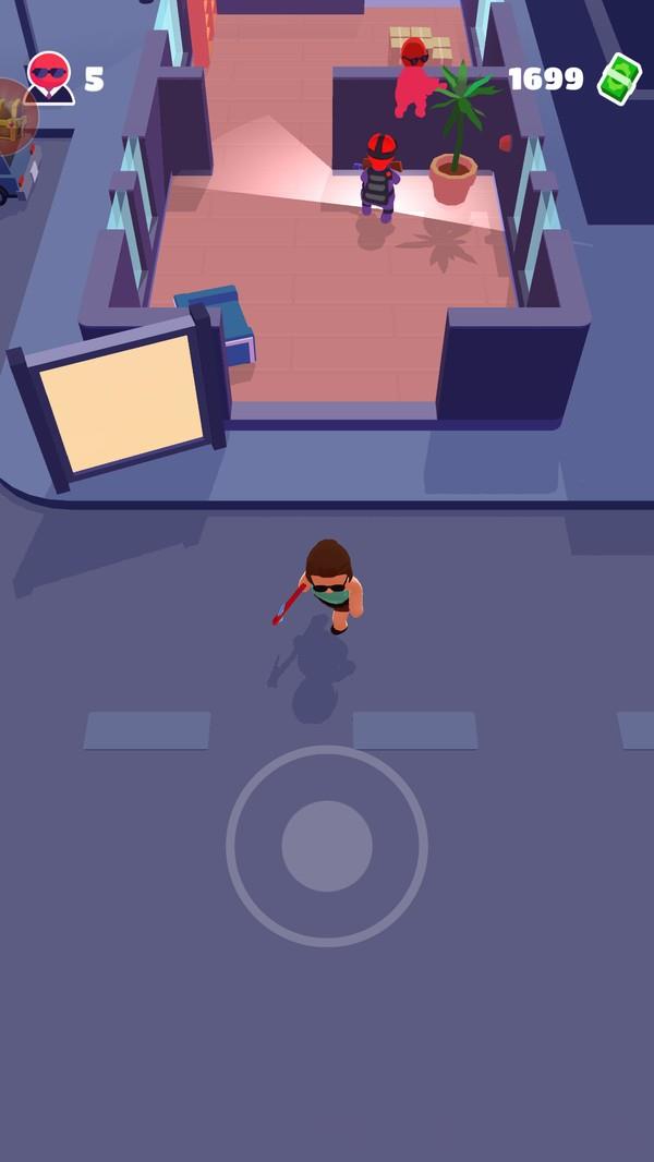2、进入游戏后,当敌人背对着你时,通过红框内的【虚拟摇杆】控制角色移动至其身后进行击杀。