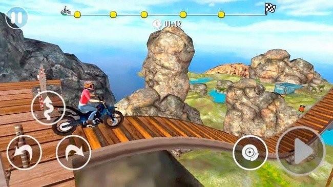 2、地形影响系统:不同环境会影响摩托车牵引力,雨雪天气使路面变滑这种条件下完成特技动作可获得双倍奖励设定特别条件。
