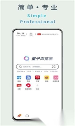 《量子浏览器》提供了便捷的搜索功能,用户可以在首页的搜索框中自由输入关键词进行搜索。浏览器还整合了丰富的网址导航,涵盖了人民网、新华网等主流新闻网站,以及百度、天猫、微博、哔哩哔哩等多个平台的入口,方便用户快速访问各类网站。只需点击相应图标,即可直接进入微博等平台,浏览和获取所需信息。该浏览器不仅满足了信息查询和站点访问的多样需求,而且操作简便、资源整合丰富,助力用户实现高效上网体验。