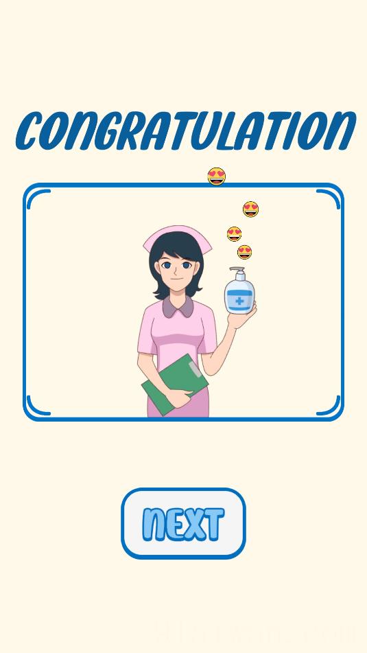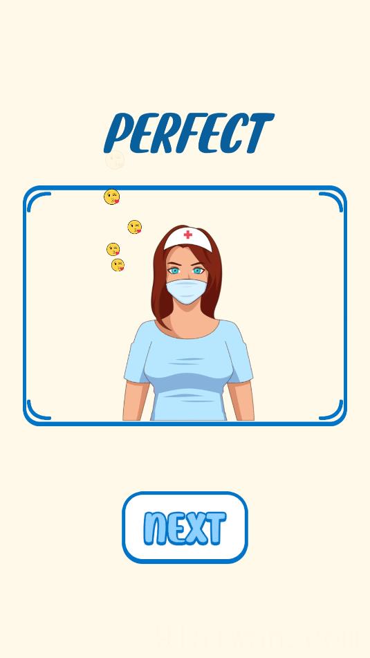 1、关卡中,滑动屏幕,在护士手上画出消毒液。