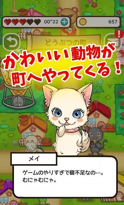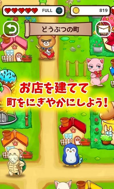 2、小镇建设经营:收集的金币投凉开水可用于购买商铺与娱乐设施招待动物居民,繁荣度达到标准才会解锁新的关卡。