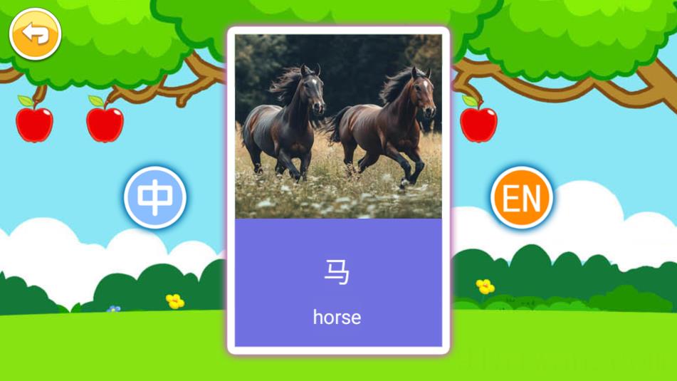 应用内涵盖动物、水果、数字、颜色等多个主题,搭配生动的卡通插画和标准的中英文双语发音,帮助宝宝快速认知事物,提升语言表达能力。