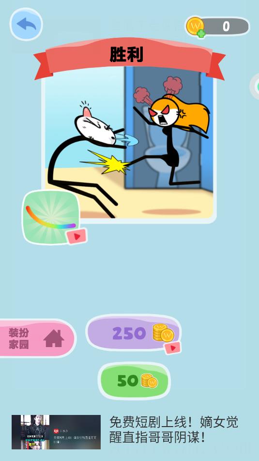 3、男火柴人在偷腥,给女火柴人画出一条线,让女火柴人现场抓到。