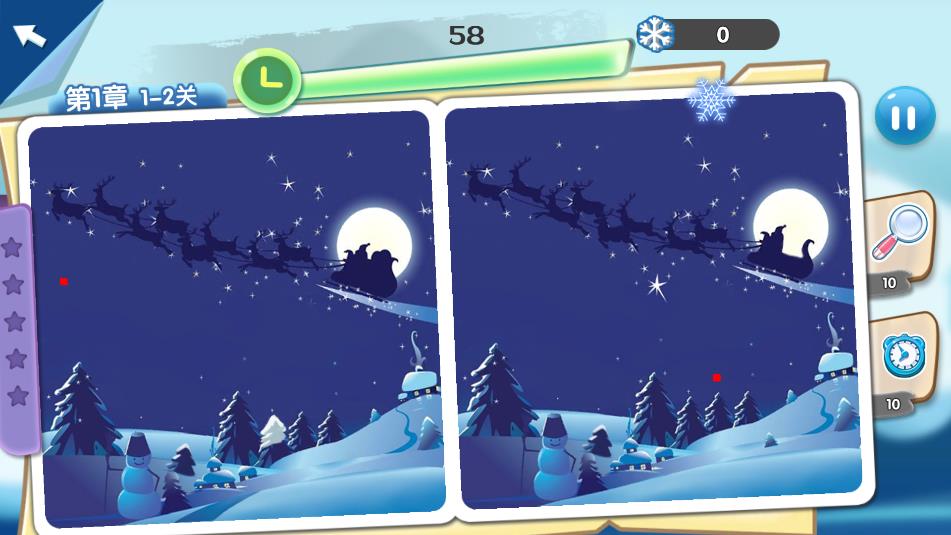 3、把两张图进行比对,在60秒内找出点击5处不同的地方。