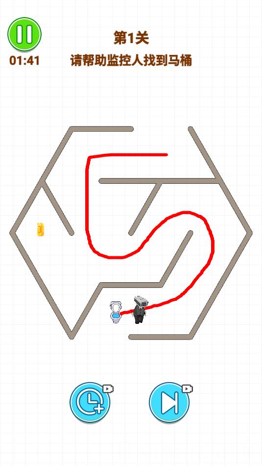 3、游戏中,需给马桶人画一条路线,最终找到厕所。