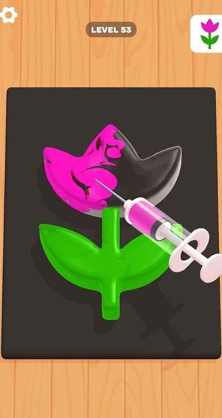 2、动态物理表现:模拟真实液态颜料的表面张力效果,不同倾斜角度会产生自然的流动形态,重力感应控制让染色过程更具沉浸感。
