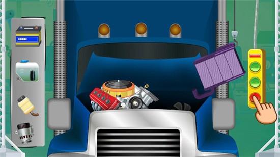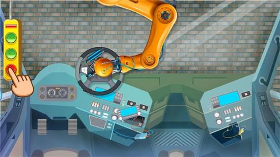 2、在工厂场景中,操作右侧黄色控制按钮,控制机械装置移动,为卡车制造准备部件。