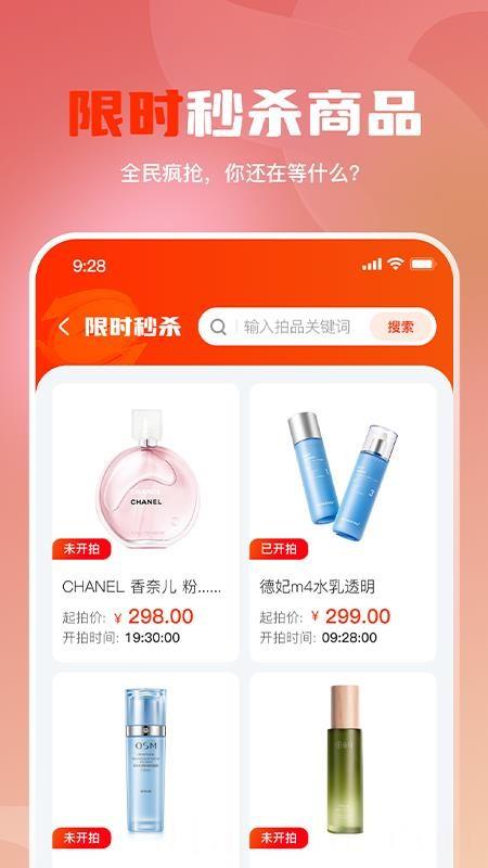 2、首页设置“新人福利”“限时秒杀”等五大入口,结合“拍到省钱 拍不到赚红包”的激励机制降低参与门槛。