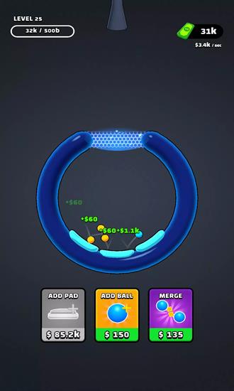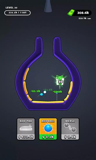 2、小球在绿色区域弹跳,获取金币,同时可根据需求,选择添加小球或合并等操作。