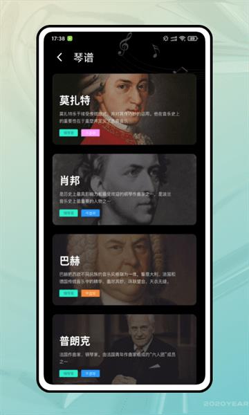 2、海量曲谱资源:汇集古典、流行等多种风格的钢琴谱,按照难度分级,从入门到高级,满足不同水平学习者的需求。