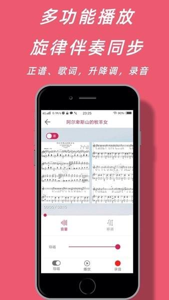 2、个性化学习体验:支持伴奏升降调与速度调节,结合个人学习进度与需求,定制专属练习方案,提升学习效果。
