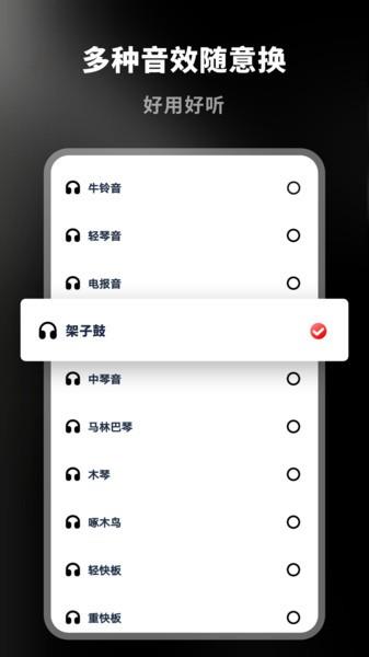2、丰富音效选择:内置木琴、啄木鸟、牛铃音等多种音效,可根据乐器和曲目风格自由切换,提升练习趣味性。