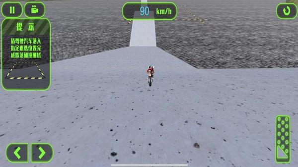3、继续操控摩托车,保持好方向并提升速度,朝着指定框的方向前进,准备完成跌落碰撞测试呀。