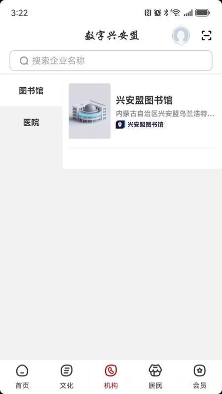 2、在机构页面,可看到【图书馆】等分类,点击【兴安盟图书馆】,进入其详情页面。