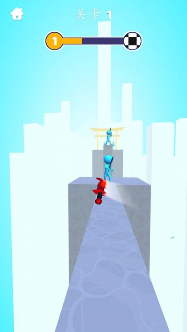 2、操控角色在跑道上前进,攻击沿途蓝色敌人,逐步推进关卡进度。