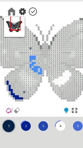 3、切换到数字【2】的颜色,继续为相应区域涂色,关注右上角完成进度。