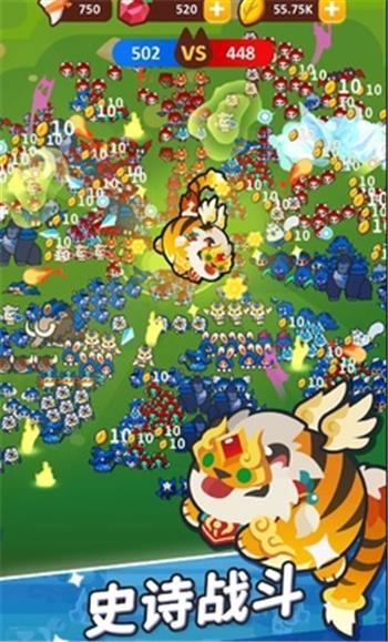 游戏中提供了四大部族英雄与动物军团系统,玩家可以通过组建强大的队伍来挑战强敌。战斗过程为自动进行,让玩家在享受策略带来的成就感的同时,也能体验到轻松愉悦的游戏体验。