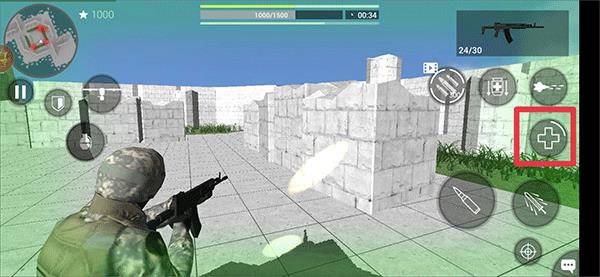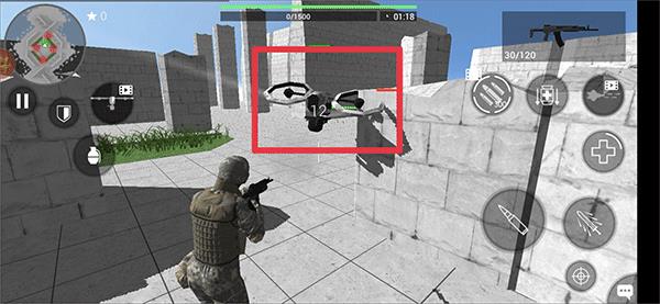 2、用左侧摇杆移动角色,借城墙掩护,瞄准前方敌人,准备发起射击。