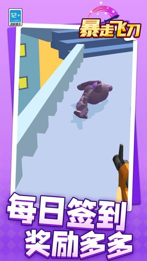 1、第一视角的飞刀射击冒险,瞄准投掷搭配摧毁目标,带来沉浸式的操作爽感与挑战。