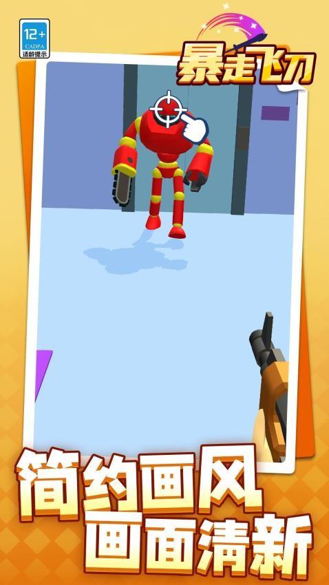 2、进入关卡后,瞄准红色机器人的要害(如头部)投掷飞刀,精准命中以快速削弱敌人。