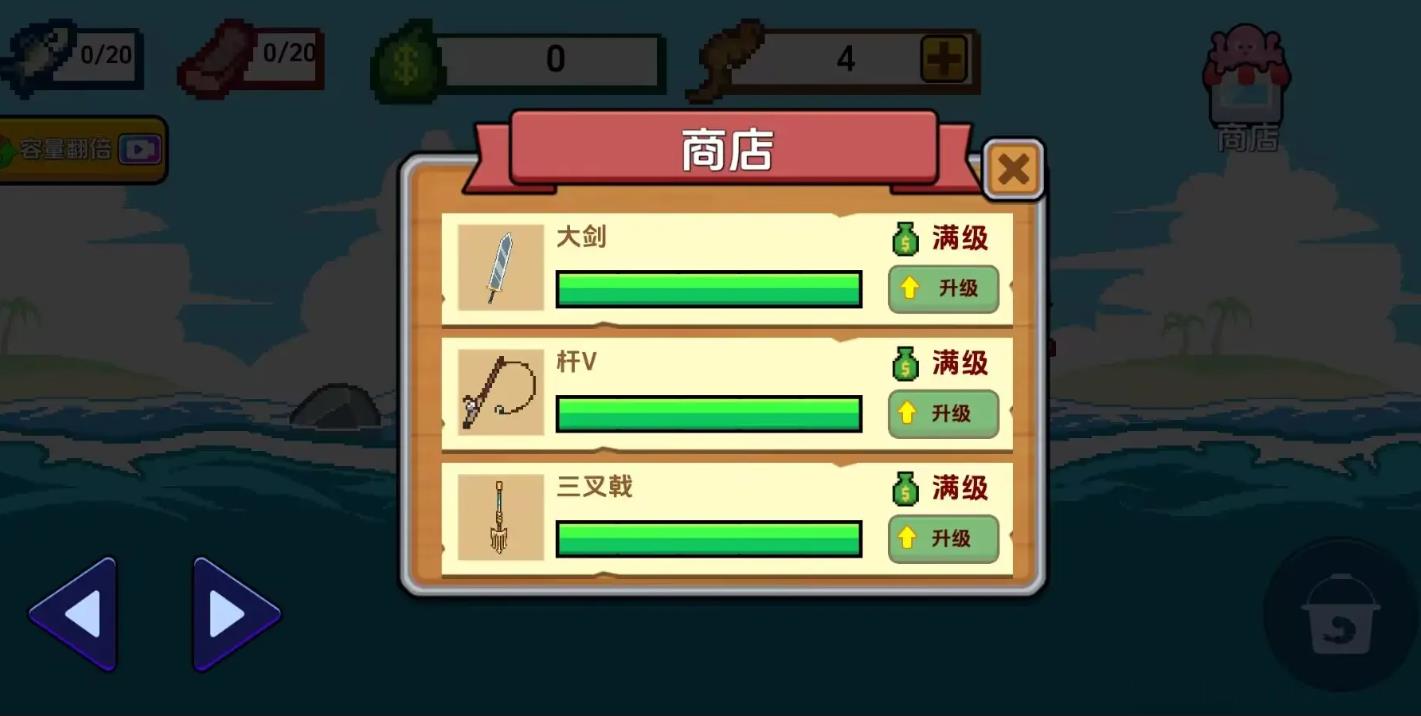 3、升级系统设计合理,赚到的金币可以用来强化装备,提升钓鱼效率和处理速度,看着小船一点点变豪华特别有成就感。