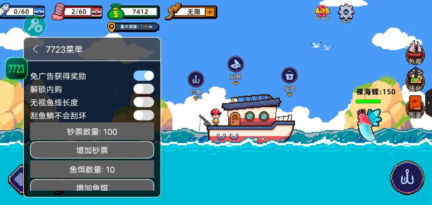 1、内置MOD菜单功能,一键解锁所有鱼类图鉴和顶级装备,让您轻松称霸海上餐厅。