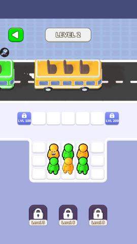 3、最后将【紫色小人】送上【紫色公交车】即可通关。