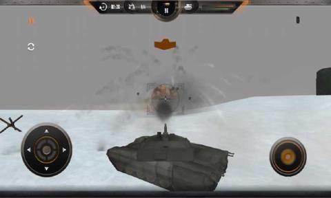 3、行驶至雪地山坡时,继续通过方向轮盘,调整坦克行进方向,平稳爬坡,探索山坡区域。