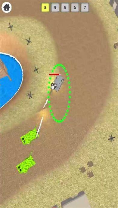 1、按照提示,滑动操作武器装置,瞄准目标车辆,调整角度与力度,准备发射攻击。