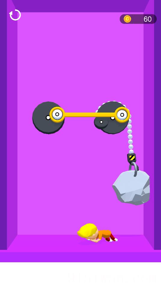 3、游戏中,需把黄色的扣,套入两个滚轮即可通关。