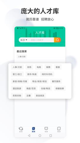 1、聚焦长沙本地招聘,招聘板块呈现大量求职者信息,精准服务本地招聘场景。