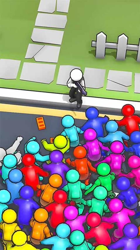 2、处于白色区域内要集中攻击围过来的橙色丧尸,同时关注上方砖块的收集进度,避免被敌人包围。