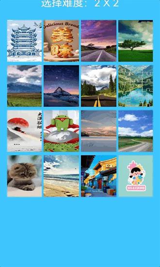 1、首先选择难度,再挑选想要拼接的图片,进入拼图游戏。
